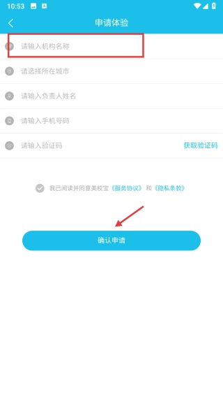 在申请体验的页面上,填写机构名称等相关信息后,点击确认申请的按钮,即可提交体验申请。