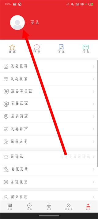 在个人中心页面,点击头像区域的登录入口,即可进入登录界面。