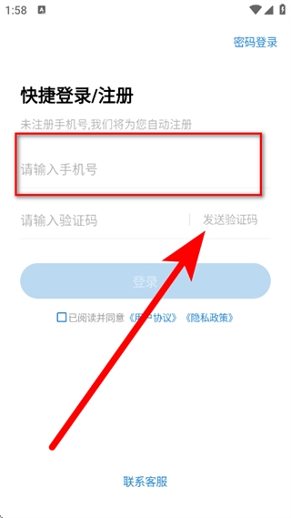 在登录页面,输入手机号,点击发送验证码。