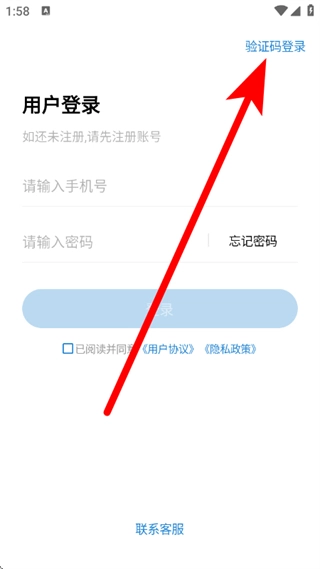 在用户登录页面,点击验证码登录,进入登录页面。