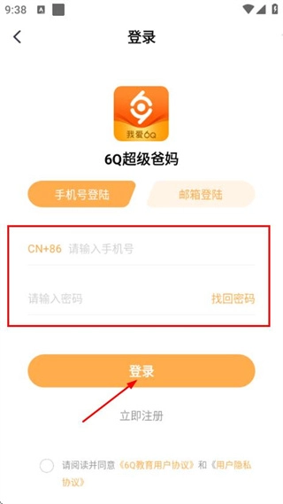 在登录页面依次输入手机号与密码,勾选相关协议后,点击登录按钮即可完成账号登录流程。