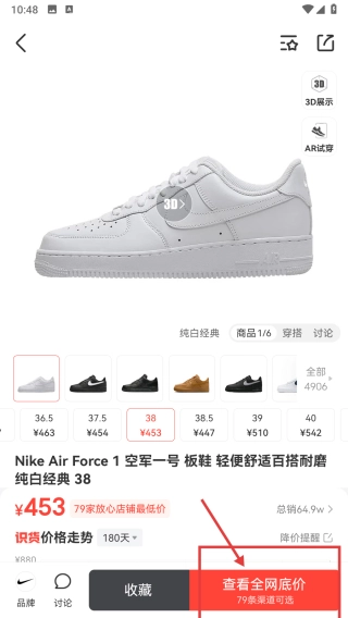 在商品详情页面,点击“查看全网底价”按钮,即可查看该商品的全网价格信息。