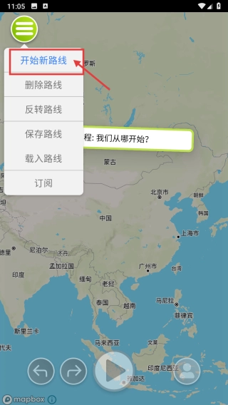 在功能菜单里,选择开始新路线这一选项,就能进入路线规划页面。