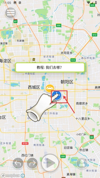 在地图页面,点击目的地选择按钮,即可启动目的地路线规划流程。