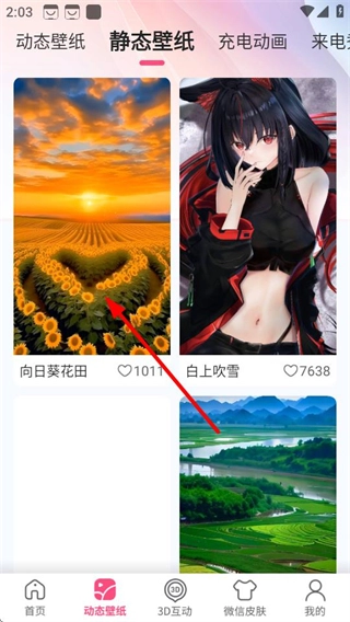 在静态壁纸页面,挑选想要使用的壁纸,进入该壁纸的详情页面。