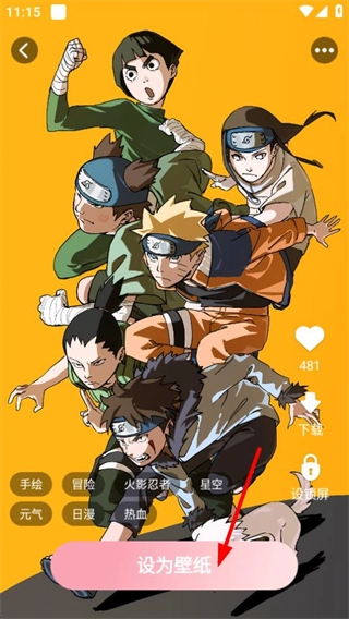 在动漫壁纸列表页,选定想要的壁纸后,即可进入该壁纸的详情页面。