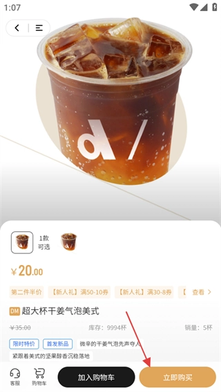 在点单页面选定目标门店后,点击相应商品即可进入其详情页。