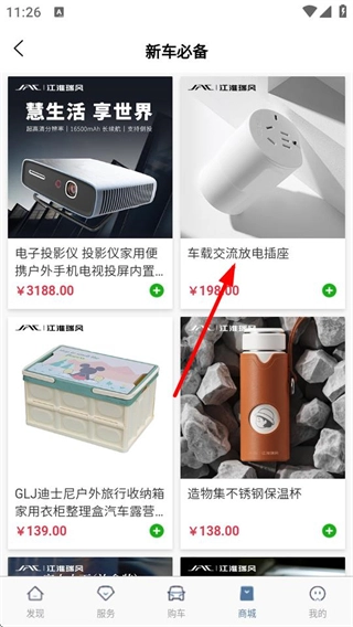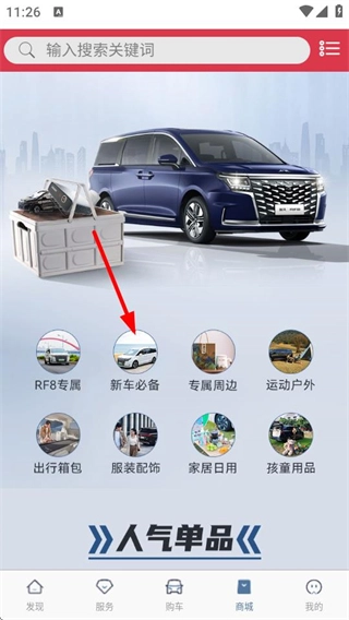 在商城页面,点击“新车必备”分类,即可进入对应的商品列表页面。