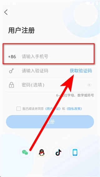 输入验证码及密码,勾选后,点击注册,完成注册。
