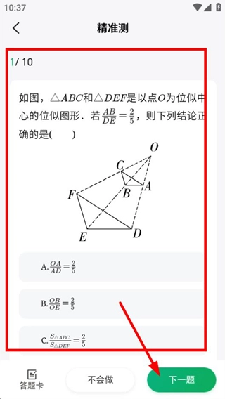 在精准测答题界面完成当前题目后,点击“下一题”按钮,就能继续进行后续题目的作答。