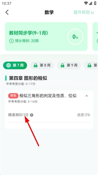 在数学学习模块里,点击精准测选项,就能进入精准测的准备页面。