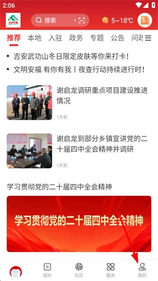 在美好安福首页,点击底部导航栏中的“我的”选项,就能进入个人中心页面。