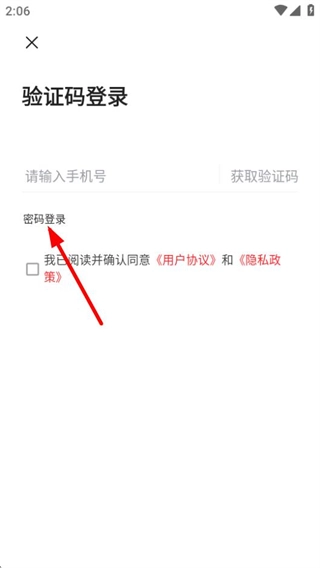 在验证码登录界面,选择密码登录选项,即可切换到密码登录页面。