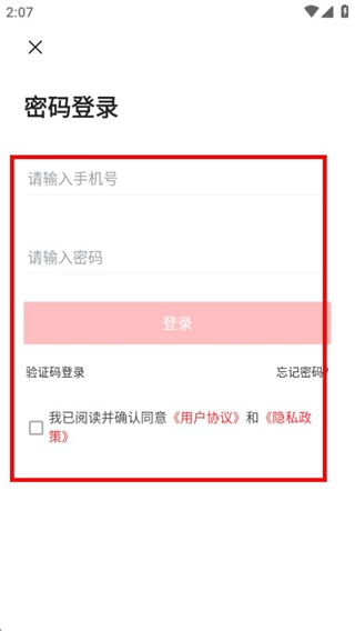 在密码登录页面,输入相关信息并勾选协议后,点击登录按钮就能完成登录操作。