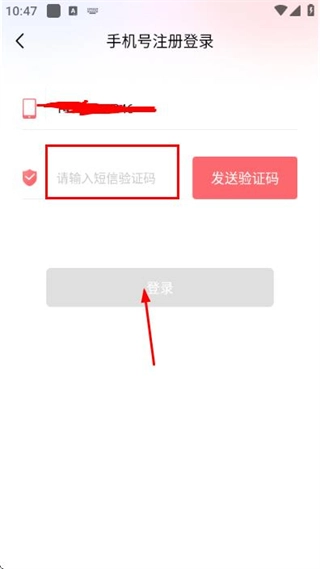 在验证码输入框中填入收到的验证码,然后点击登录按钮,即可完成账号登录流程。