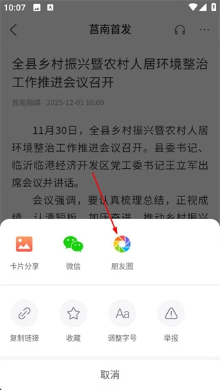 在分享选项里,点击朋友圈,就能把这条资讯分享到朋友圈啦。