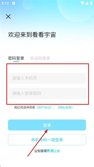 在登录界面输入手机号与密码,勾选相关协议后,点击登录按钮即可完成账号登录流程。