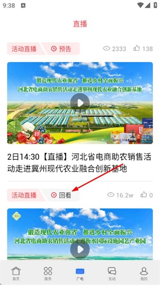 在广电直播页面找到目标视频后,点击回放按钮,即可进入该视频的回放页面。