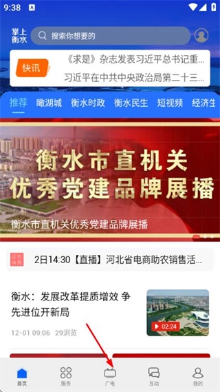 在掌上衡水首页,点击底部的广电按钮,即可进入广电页面。