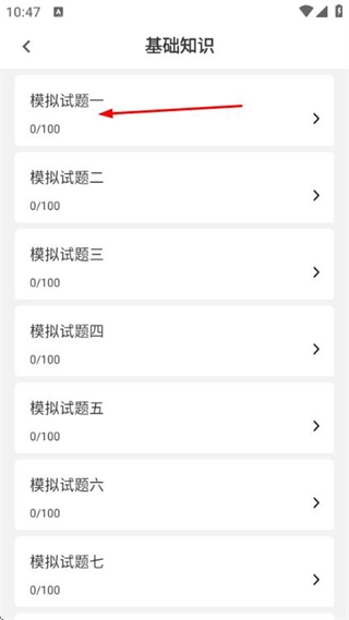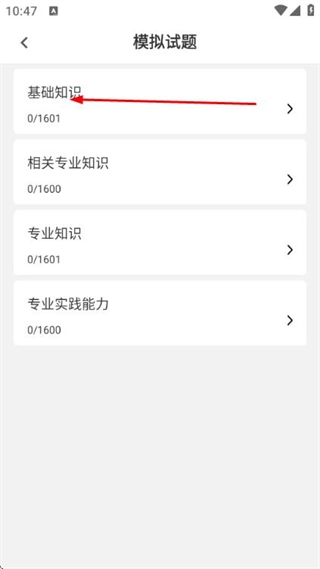 你可以在基础知识页面找到目标选项并点击,这样就能进入对应试题的答题页面了。