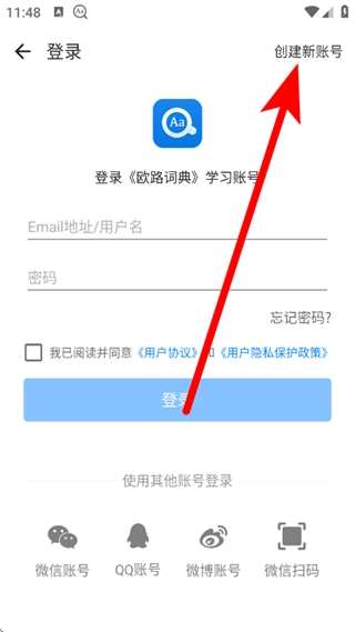 在登录页面,点击右上角的“创建新账号”按钮,即可进入注册页面。
