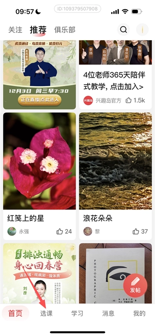 在兴趣岛的首页,点击底部的选课选项,进入选课页面。