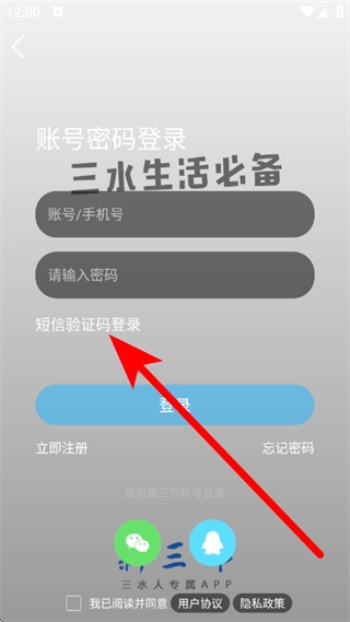 在登录页面,选择短信验证码登录方式,随后进入手机号填写界面。