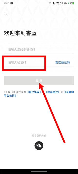 输入验证码,勾选协议后,点击登录,完成登录。