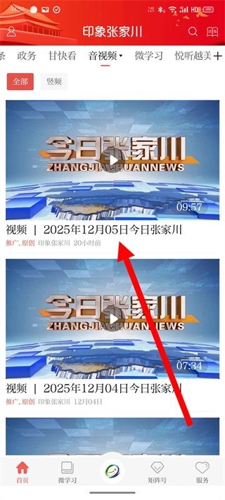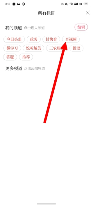 在任意栏目页面,点击选择音视频频道,即可进入相应的内容列表页面。