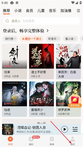 在这个听书应用的首页,点击底部导航栏里的“我的”选项,就能进入个人中心页面。