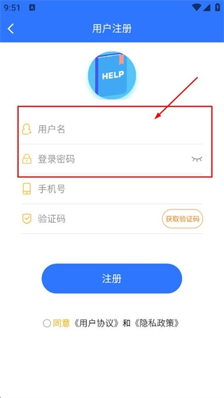 在用户注册页面,输入手机号并填写验证码,点击注册按钮,就能完成账号注册流程。
