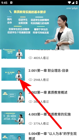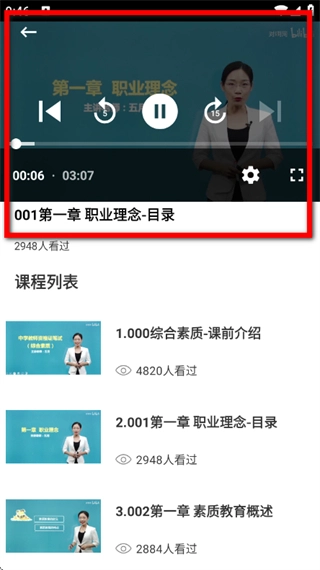 在课程详情页面,挑选具体的课程章节,点击进入课程播放页面。