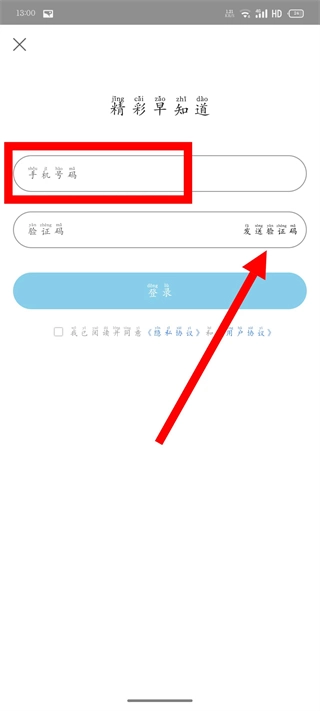 在验证码输入框中填写验证码,勾选相关协议后,点击登录按钮,即可完成登录操作。