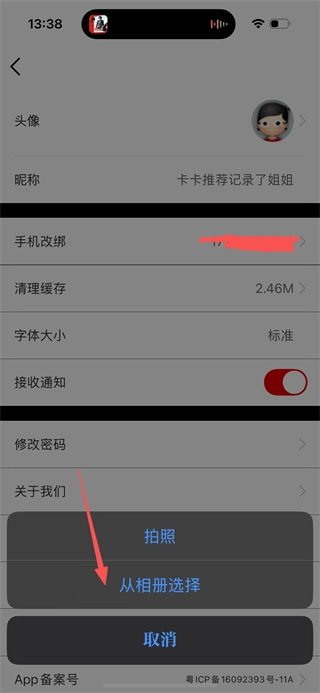 在窗口里,点击“从相册选择”这个选项,就能从相册中挑选图片来更换头像了。