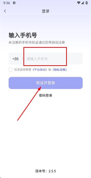 在手机登录界面输入手机号,勾选相关协议后,点击“获取验证码”按钮。