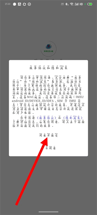 打开未来社区e家商家端,弹出提示框后点击“同意并接受”,即可进入首页。
