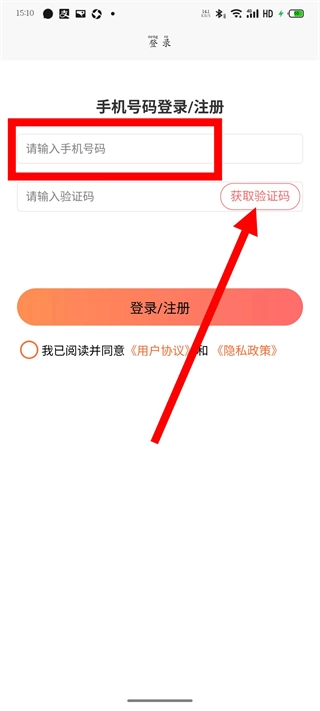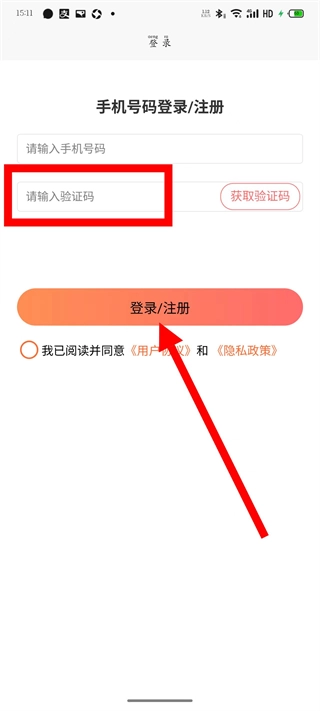 请先输入验证码,接着勾选相关选项,再点击登录注册按钮,这样就能完成账号登录操作了。