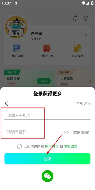 在登录界面输入手机号与密码,勾选相关协议后,点击登录按钮即可完成账号登录流程。
