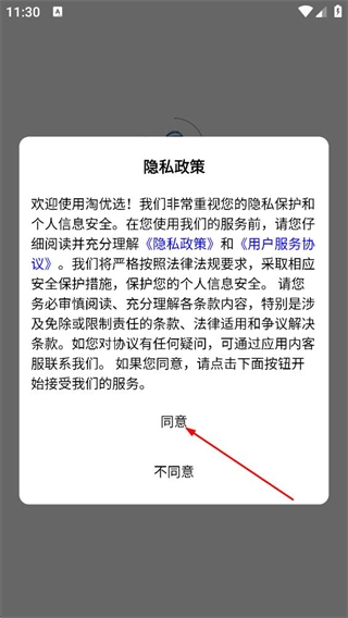 在仔细阅读隐私政策以及用户服务协议之后,请点击弹窗里的同意按钮。