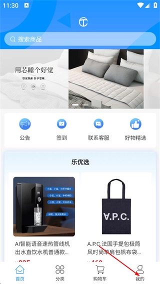 在淘优选首页,点击底部的“我的”选项,进入个人页面。