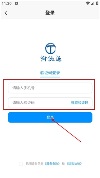 在登录页面输入手机号和验证码,接着点击登录按钮,就能完成整个操作流程。