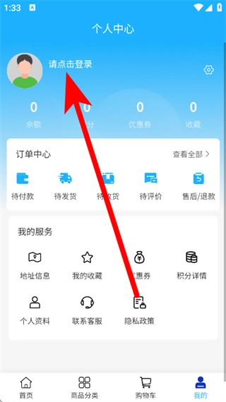 在个人中心页面,点击请点击登录,进入登录页面。