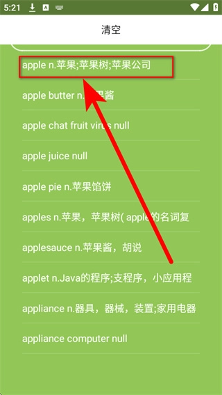 在搜索结果列表中找到目标单词的条目,点击该条目即可进入单词详情页面。