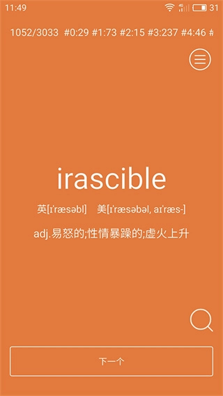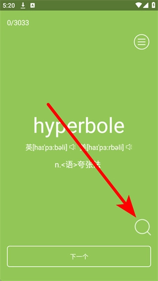 打开硬背,点击右下角的搜索,进入单词输入界面。