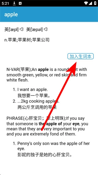 在单词详情页面,点击“加入生词本”按钮,就能把这个单词添加到生词本里了。