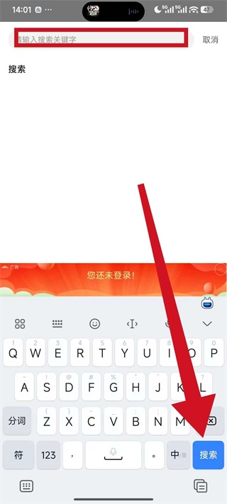 在搜索页面的输入框里填入你想查找的关键词,填好之后点击搜索按钮。