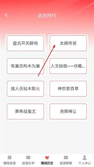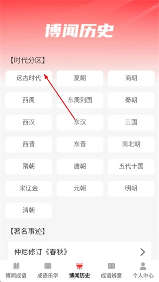在博闻历史页面,选定目标时代后,即可进入对应时代的内容列表页面。