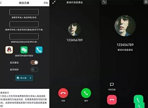 填写好号码或名称、号码归属地、延迟时间以及显示的图表就能进行模拟,还能切换头像、更换背景等。最逼真的是它还具备震动和响铃功能。你可以选择拒绝或者接听,不过接听后不会有声音。