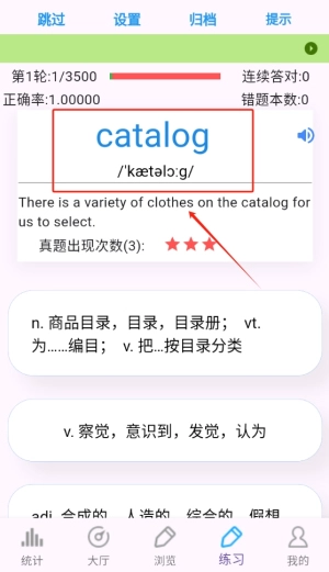 智能的数据统计功能,会记录每日的记背情况,还能反馈准确率,帮助用户清晰了解自身的学习进度以及存在的不足之处。
