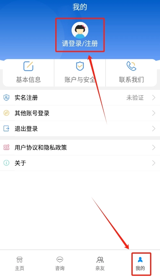 打开榆林工伤软件后,首先看到的就是主界面,点击右下角的“我的”页面,就能找到登录选项。